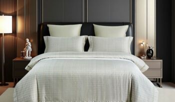 Несъемный чехол Жаккард экономика (стежка синтепон 300г). Бурлет Серая Рогожка "квадраты" (стежка ППУ 0,8 см).
