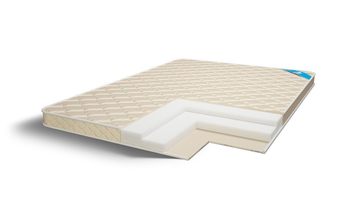 Ортопедическая пена расположена у противоположной стороны. Она более мягкая и податливая по своей структуре, поэтому хорошо адаптируется под любую анатомию. Материал пластичен и упруг, в то же время его пористая структура способствует свободному прохождению воздуха, что благотворно сказывается на микроклимате спального места.